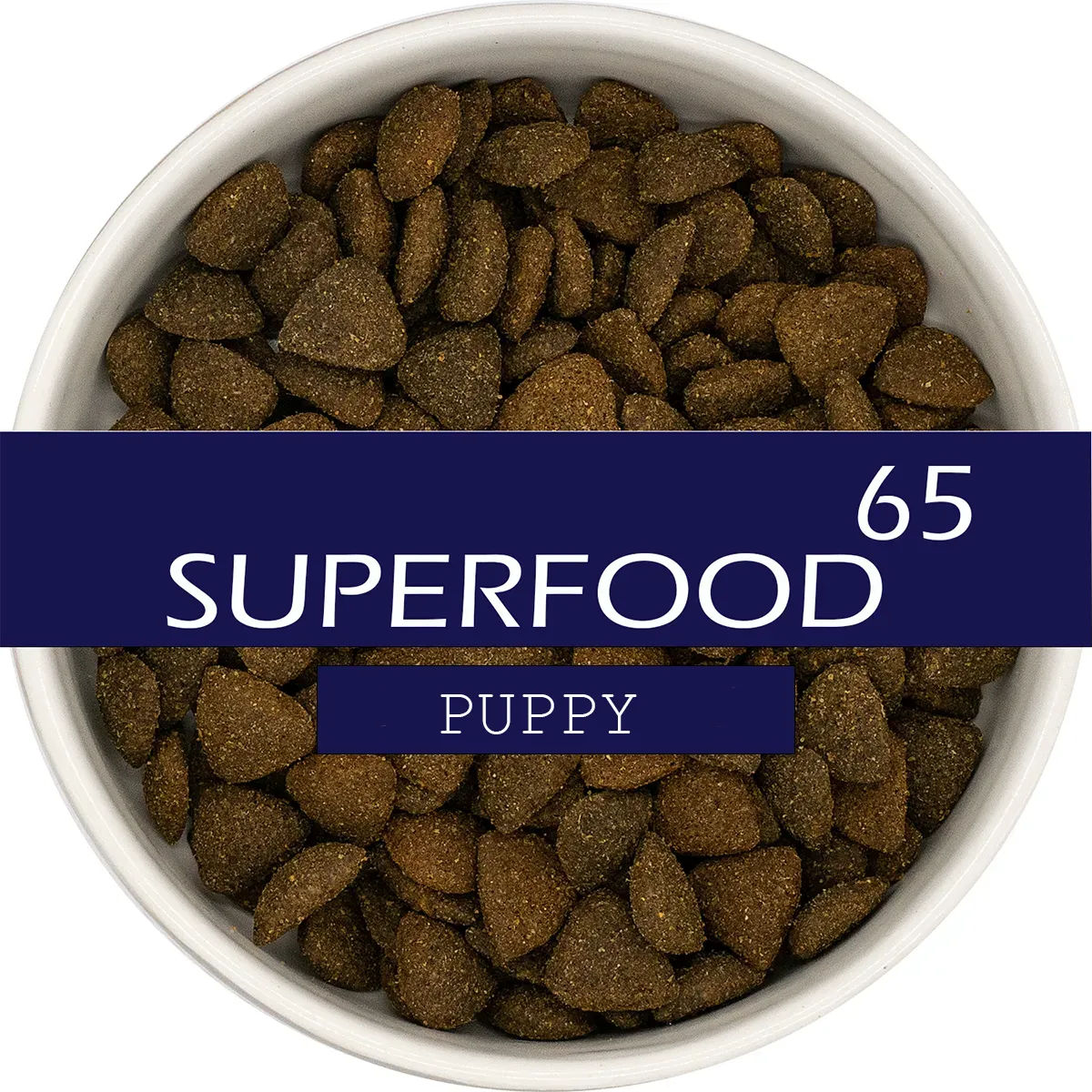 Freshly prepared raw meat or fish gently cooked to protect the valuable protein, plus a blend of nutritiously beneficial Superfoods – only the best for your puppy